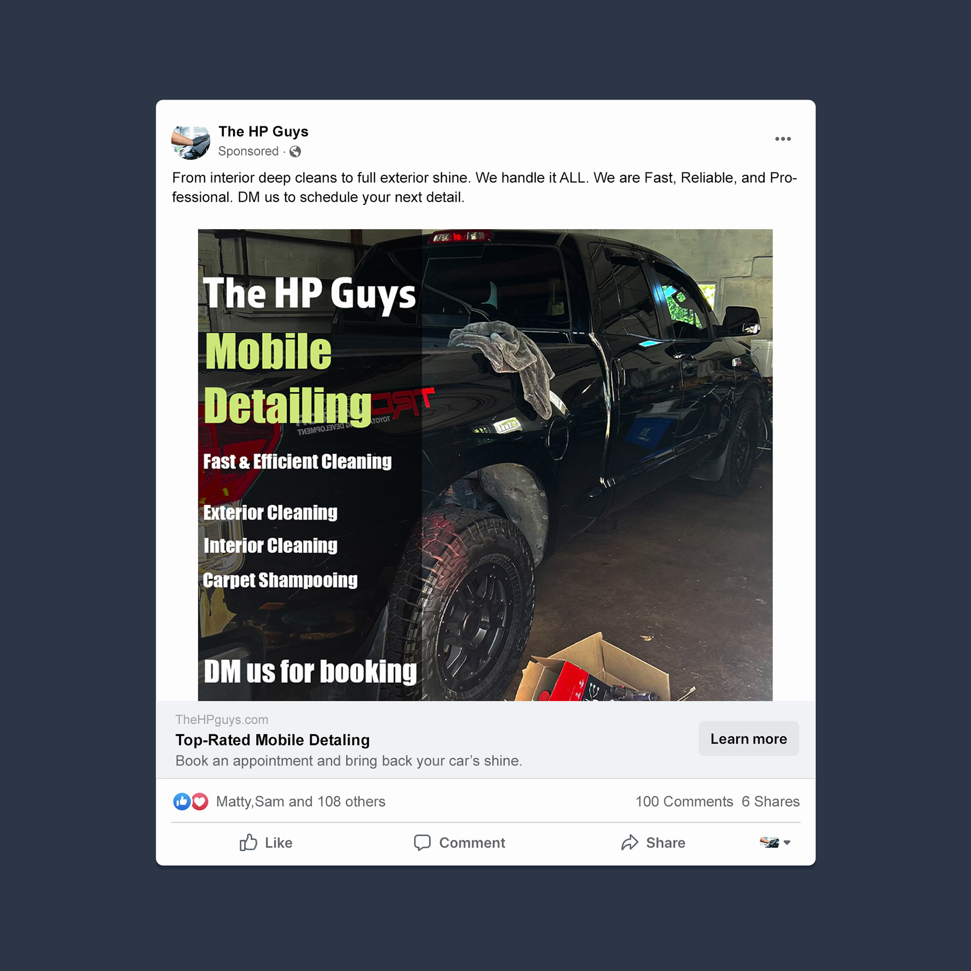 A professional mobile detailing ad mockup, created to showcase a realistic social media marketing design for a fictional small business concept. Mockup credit : Adobe Photoshop via Unblast.
